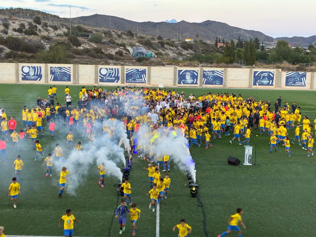 Desfilaron uno a uno los 32 equipos masculinos y femeninos hasta alcanzar una “gran familia” de 600 futbolistas. Abrieron paso los prebenjamines de la Academia Félix Palomares y la “escoleta”, muy aplaudidos por el público. A continuación, alevines, benjamines, femenino base, infantiles, cadetes, juveniles y el filial, cada uno con sus entrenadores, culminaron con el primer equipo.