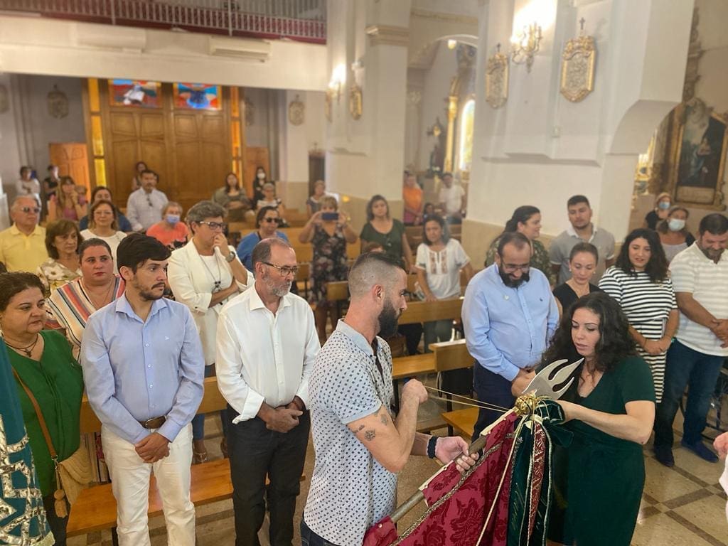 Se trataba de la Misa especial por los festeros fallecidos a lo largo del año y la tradicional imposición de corbatines en los estandartes de las comparsas moras y cristianas, a los que han acudido el alcalde Juanjo Berenguer, la presidenta de la Justa Festera, Marga Sebastià, el concejal de Fiestas y Tradiciones Cristian Palomares (PP), la pregonera, y los concejales Marisa Navarro y Maricarmen Alemáñ, ambas del Partido Popular.