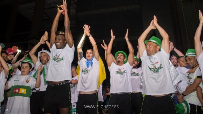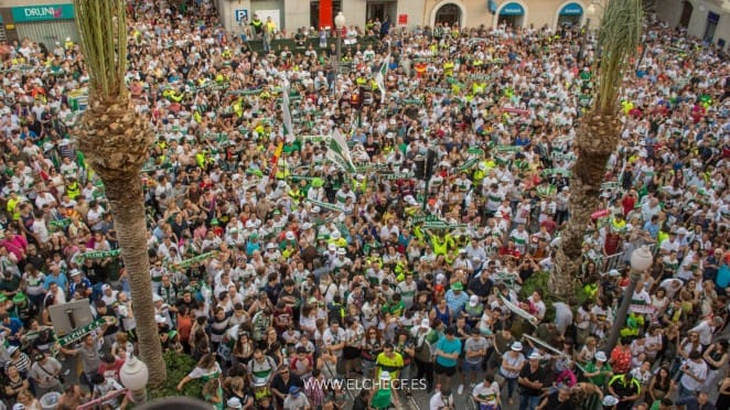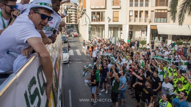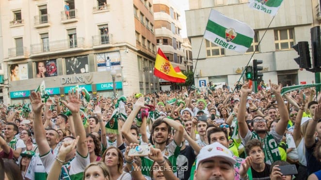 Elche se ha lanzado a la calle para festejar por todo lo alto el regreso de su equipo, el Elche C.F., a Segunda División.