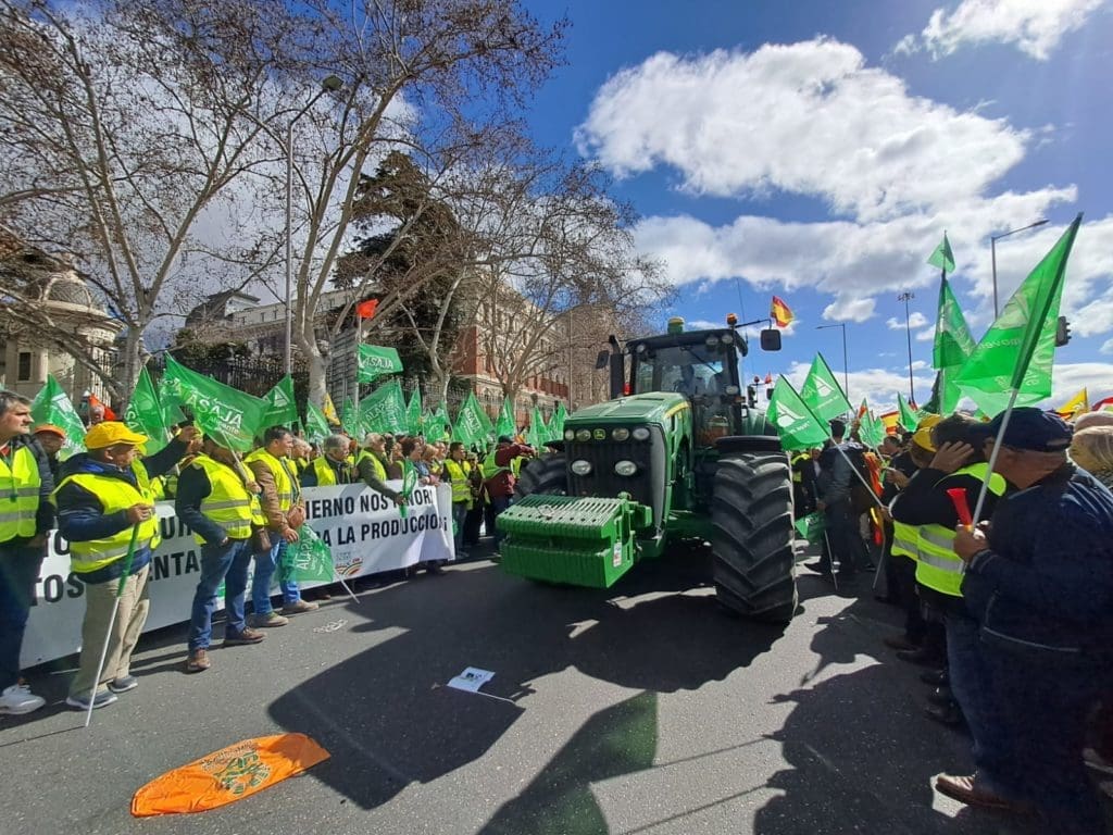 En Madrid, los tractores han partido a las 9 de esta mañana desde el puente de Arganda, accediendo a la capital por la Nacional 3, Avenida del Mediterráneo, Ciudad de Barcelona, para concentrarse finalmente en el Paseo de Infanta Isabel, frente al ministerio de Agricultura. Desde este punto, acompañados por las «más de 15.000 personas asistentes a pie», se han dirigido a la sede de la Oficina de la Comisión Europea, donde han intervenido los máximos responsables de las organizaciones convocantes.