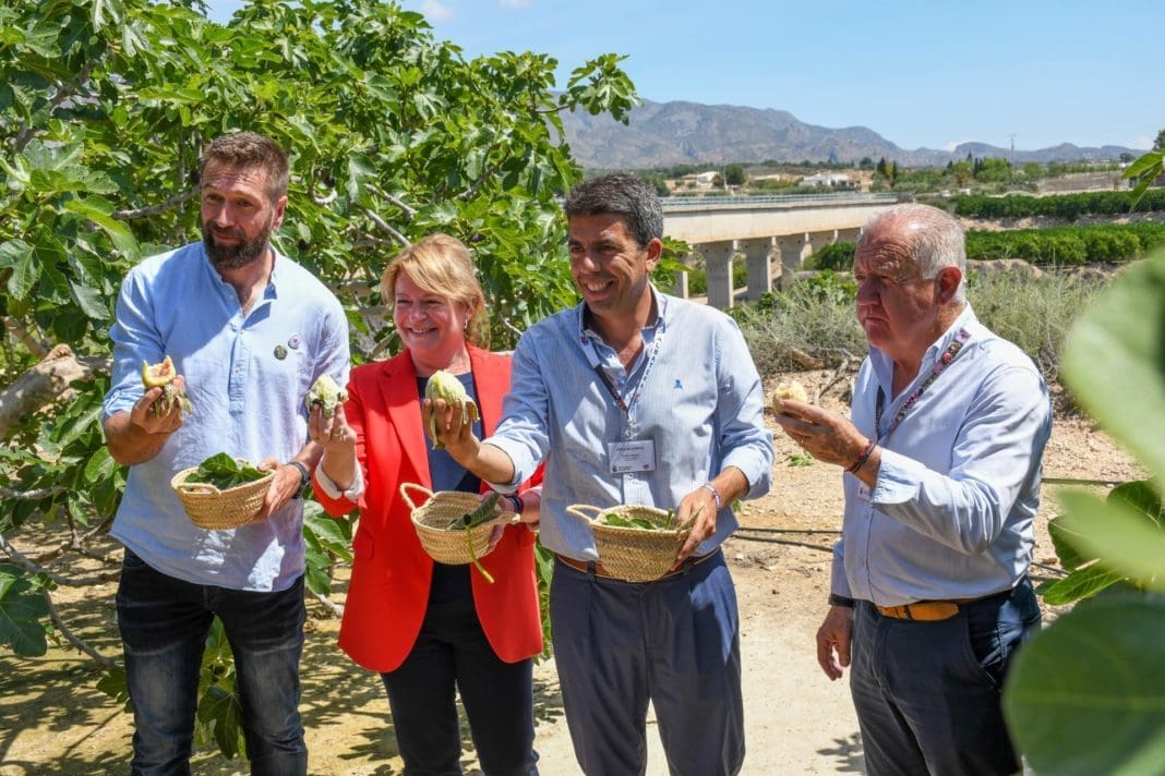 Albatera inaugura la temporada de su producto estrella con el corte de la Breva 2023 en el que han estado presentes Ana Serna, alcaldesa de la localidad, Carlos Mazón, presidente de la Diputación Provincial, Sebastián Cañadas, diputado de Desarrollo Económico, Amparo Pérez, concejala de Agricultura, Mario Berná, vicepresidente de la Asociación de Productores de la Breva de Albatera y Julius Biernet “Julius”, padrino del acto.