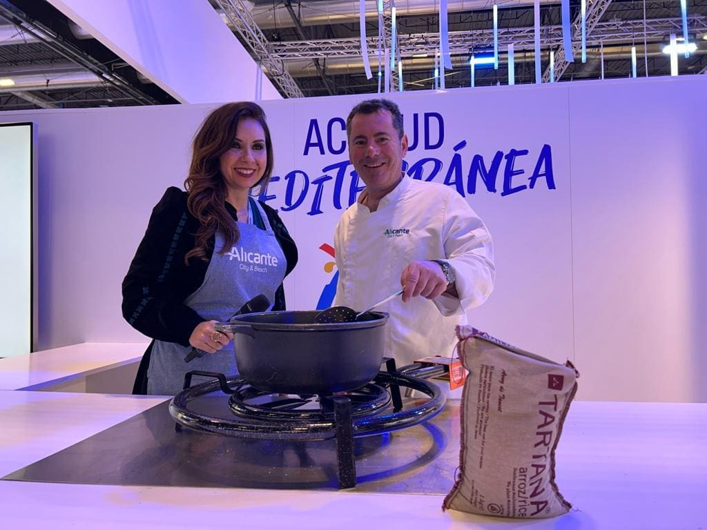 La actividad de este viernes en Fitur la ha protagonizado un showooking para elaborar el tradicional caldero que ha realizado el restaurador alicantino Moncho Riquelme, de Casa Riquelme, y que ha sorprendido a los presentes. El cocinero ha explicado cómo elaborar este plato típico de la gastronomía alicantina con productos mediterráneos y de calidad.