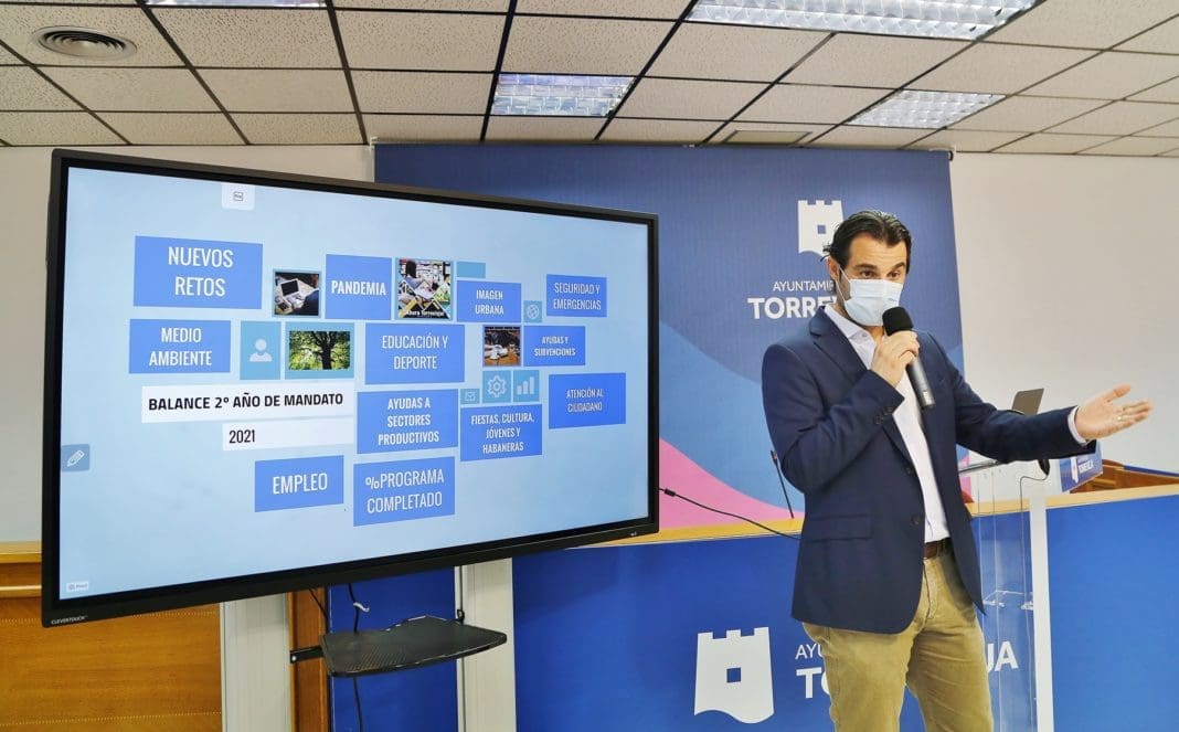 El alcalde de Torrevieja, Eduardo Dolón, ha hecho balance de los dos primeros años de mandato al frente del Ayuntamiento, en los que “hemos tenido que gestionar el Ayuntamiento en plena pandemia 15 de estos 21 meses de gobierno, lo que ha supuesto que gran parte del esfuerzo y del trabajo de todos y cada uno de los concejales que conformamos el equipo de Gobierno haya estado centrado en atender las muchísimas necesidades de los ciudadanos y de los sectores productivos de la localidad”.