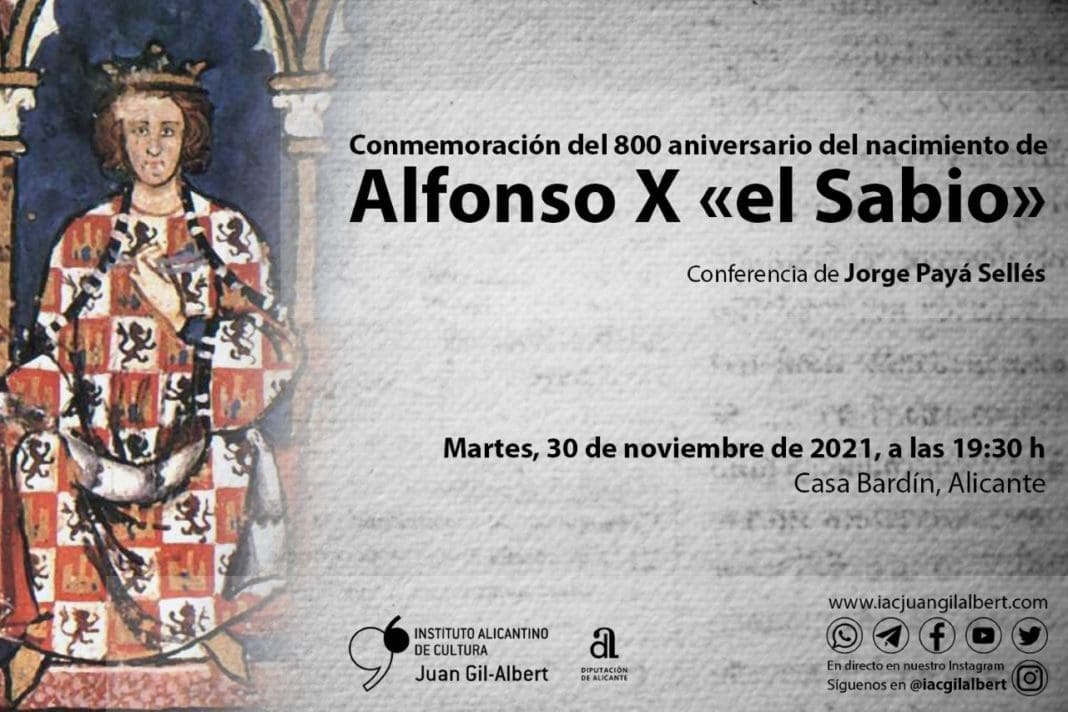 El Instituto Alicantino de Cultura Juan Gil-Albert se suma con una conferencia este mes de noviembre a la conmemoración del octavo centenario del nacimiento del Rey Alfonso X El Sabio para dar a conocer el trascendental papel que jugó en la historia de Alicante.