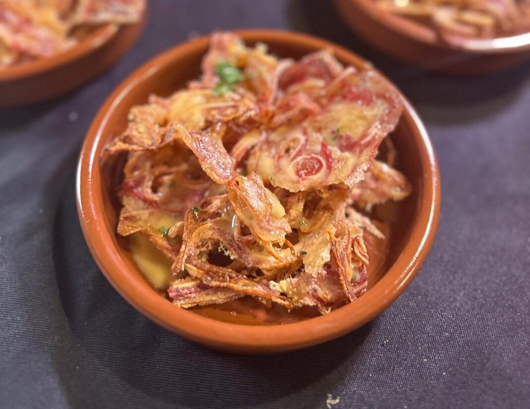 Entre las tapas que se han servido en la degustación de la presentación destacan: una ensalada templada de lentejas y langostinos, con aliño de kiwi y cilantro, oreja cofrade al vermut alicantino, buñuelo de bacalao, crunchy de bacalao, zamburiña al grill con chimichurri casero , alioli de ajo perejil y polvo de Kalamata y pulpo a la gallega, en texturas: patata crujiente gallega, pulpo a la brasa, aire de su cocción, emulsión suave de pimentón dulce y esferas de avoe.