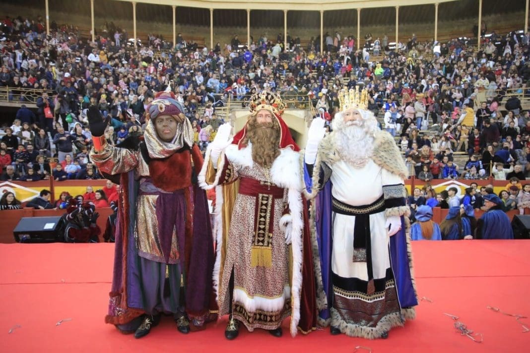 Desde ese punto se han dirigido a la plaza de toros. Mientras llegaban, finalizaba el espectáculo infantil “La magia de la Navidad”. Unos 3.000 niños lo han podido presenciar después de que recogieran las invitaciones que se han ido entregando en los últimos días en la Casa de la Festa “Manuel Ricarte”. Sus Majestades, encarnados en Moncho Riquelme, Francisco Coll y Carlos Baño- han saludado a los pequeños espectadores desde el propio ruedo antes de subir a un escenario para dirigirles unas breves palabras. A continuación, se han dirigido a la avenida de la Estación para el comienzo de la Cabalgata en la que también han participado las Carteras Reales, representadas por Marisa Artiaga, Ana Poquet y María Teresa Alfonso.