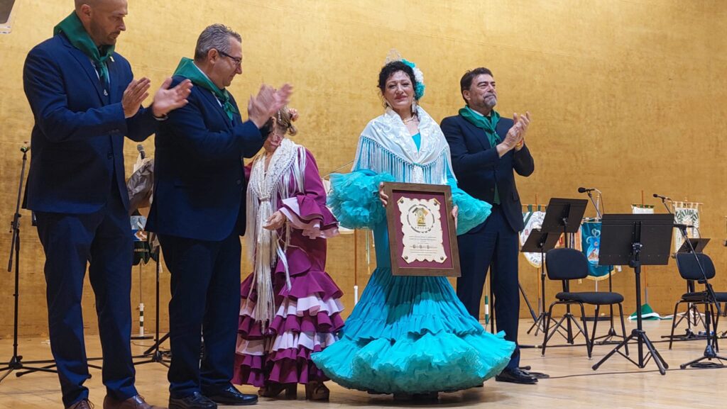 Barcala y Pérez han entregado a Leonor Jiménez, presidenta de la Casa de Andalucía en Benidorm, el título acreditativo como Andaluza del Año 2026, al tiempo que han tenido un reconocimiento a los representantes de las distintas casas y entidades andaluzas de la provincia presentes en el acto, presidentes, reinas, damas y rocieras, con el presidente de la Federación Cultural de Andalucía al Sur de la Comunidad Valenciana (FECUAS), Raúl González Melero, al frente. En el acto han participado también la concejala de Comercio de Alicante, Lidia López, y el diputado, José Ramón González de Zárate, además del concejal de Cultura de San Vicente, Óscar Llopis, entre otras autoridades presentes.