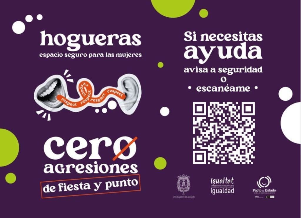 En paralelo y en colaboración con la Federació de Fogueres se repartirán 12.000 vasos, 150 lonas, 4.000 carteles y 1.500 pegatinas con imágenes de la campaña, el lema y un código QR que remite a la página de la concejalía con información y los teléfonos a los que llamar si se es víctima o testigo de cualquier agresión, abuso o acoso de índole sexista.