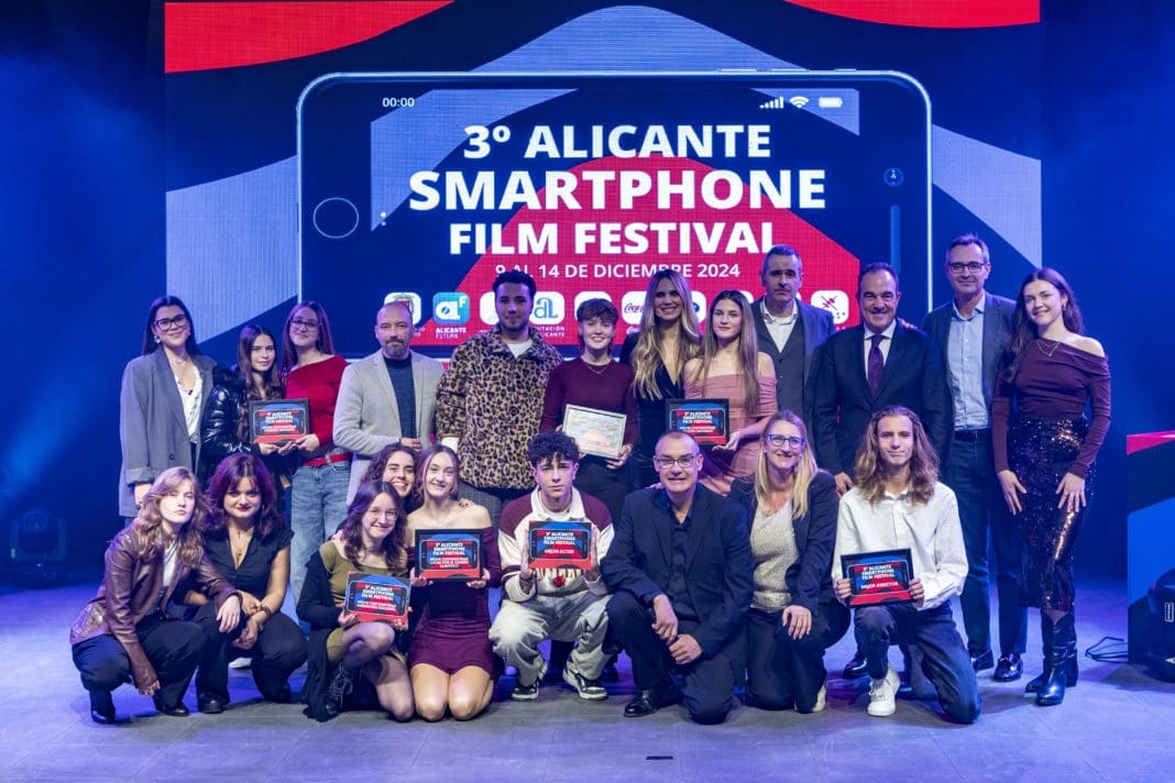 Alicante Smartphone Film Festival cerró su tercera edición este sábado con la gala de clausura. La gala del cine en corto hecho con móvil tuvo lugar en la Casa de la Música de las Cigarreras y finalizó con la entrega de los premios a los cortometrajes ganadores, de la mano de la presentadora y actriz alicantina Vanesa Romero. Se repartieron un total de 2.500 euros en premios en un certamen patrocinado por la Agencia Local de Desarrollo del Ayuntamiento de Alicante ‘Impulsalicante’ junto a la Diputación y el Hospital General de Alicante.