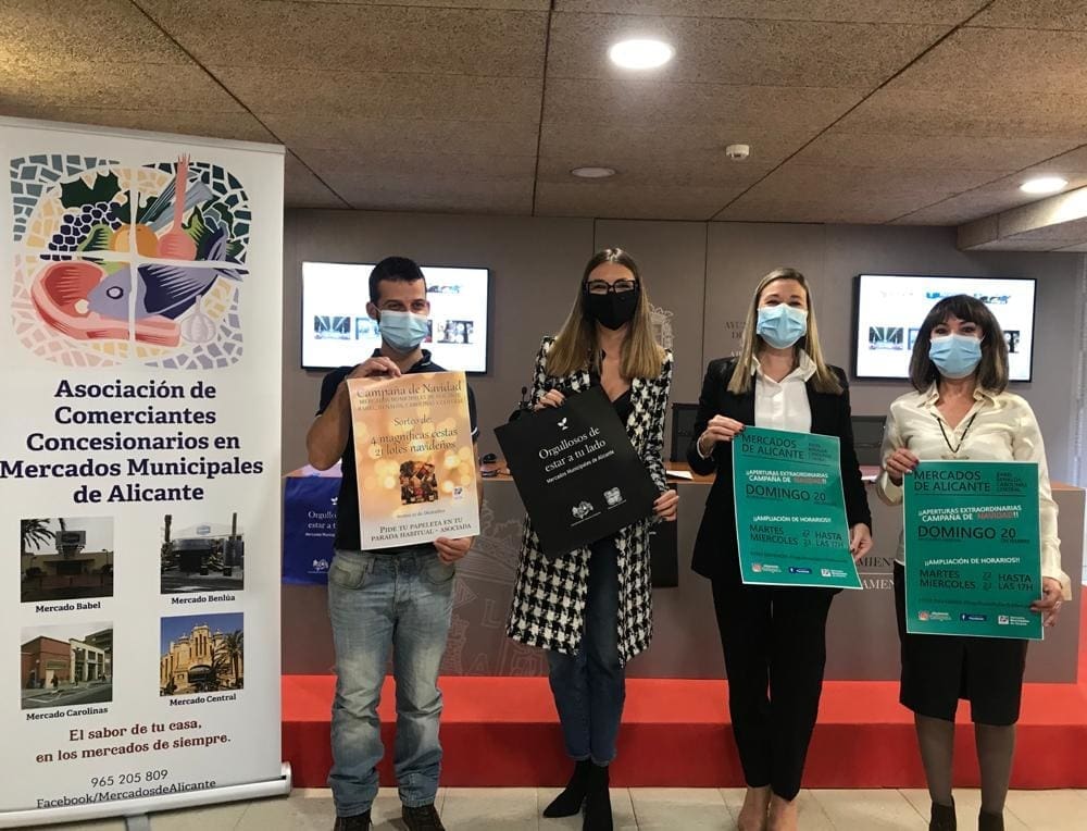 La concejala de Comercio, Consumo y Mercados del Ayuntamiento de Alicante, Lidia López, junto con el vicepresidente de la Asociación de Comerciantes Concesionarios en Mercados Municipales de Alicante, Francisco Alemañ, han presentado esta mañana la nueva web https://mercadosalicante.com/, y una campaña de Navidad promovida para fomentar y promocionar la actividad y las compras de proximidad en nuestros mercados durante estas fiestas.