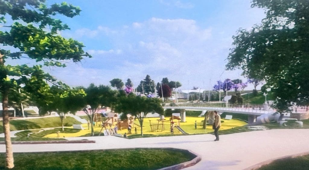 Este proyecto saldrá a licitación por 3,6 millones de euros y contará con un escenario con gradas, tres zonas de juegos infantiles que incluyen una tirolina de 28 metros y juegos adaptados; nueve grandes toboganes que permitirán salvar los desniveles de forma lúdica; zona deportiva que incluye área de calistenia, circuito de ejercicios biosaludables, pistas de petanca y muro de escalada; además de zonas verdes con setos y arbolado y áreas de descanso y de sombra.