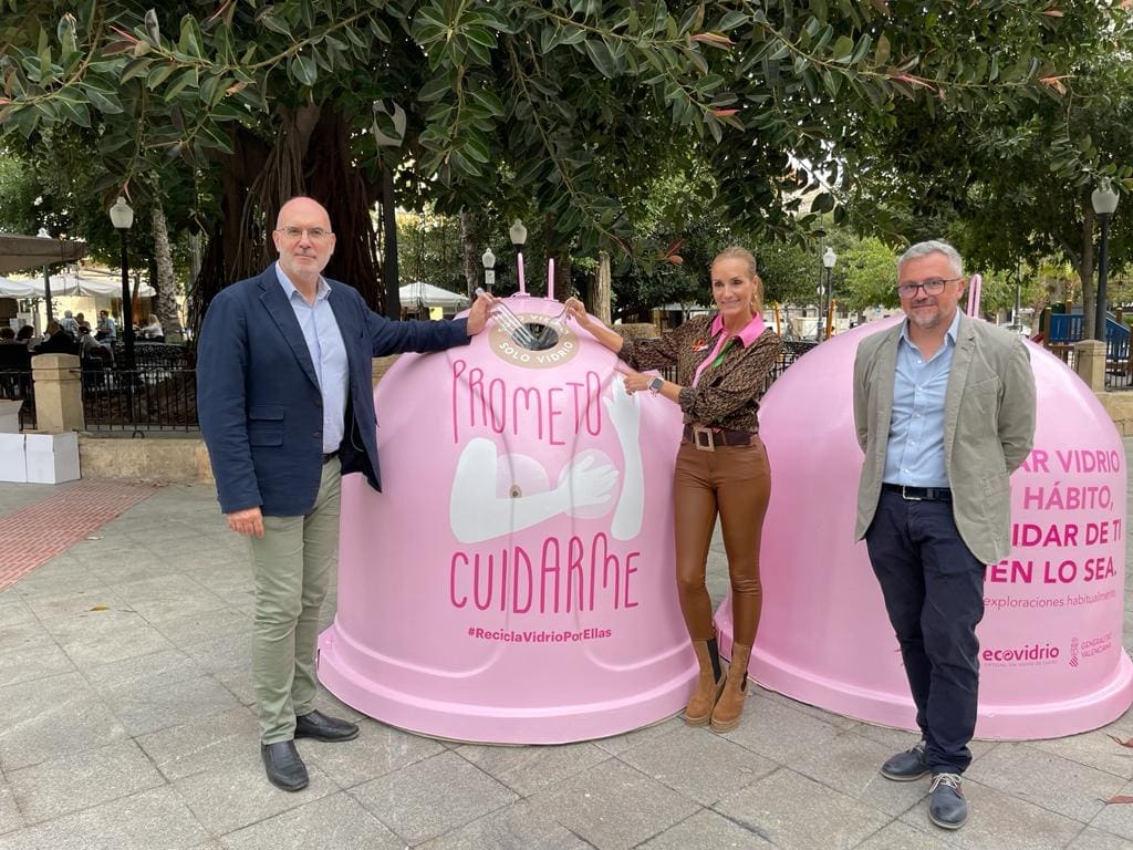 La iniciativa se ha presentado esta mañana en un acto que ha contado con la presencia de Manuel Villar, concejal de Medio Ambiente, Limpieza Viaria y Residuos del Ayuntamiento de Alicante; Sandra Ibarra, presidenta de la fundación; y Roberto Fuentes, gerente de zona de Ecovidrio. En el acto han participado mujeres supervivientes del cáncer de mama de Alicante y provincia.