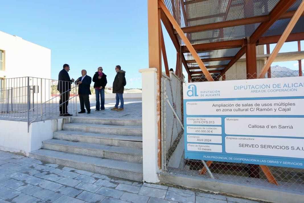El municipio de Callosa d’en Sarrià cuenta desde hoy con un nuevo centro social gracias a la inversión de 450.000 euros realizada por la Diputación de Alicante en colaboración con el Ayuntamiento de la localidad. El diputado de Infraestructuras, Antonio Bernabeu, y el alcalde, Andrés Molina, han inaugurado esta mañana estas nuevas dependencias, concebidas para albergar actividades culturales, educativas y comunitarias, ubicadas en la prolongación de la calle Ramón y Cajal.