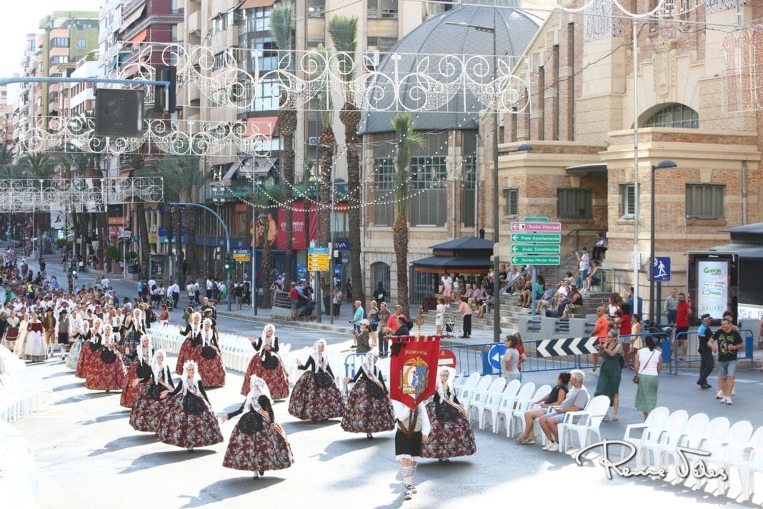 Las encargadas de abrir este desfile fueron les belleses del foc d’ Alacant, Belén Mora e Inés Llavador, sus dames d’honor; la presidenta de la Federació de les Fogueres de Sant Joan, Toñi Martín-Zarco y miembros de la Federació de les Fogueres de Sant Joan acompañados de la Banda Sinfónica Municipal.