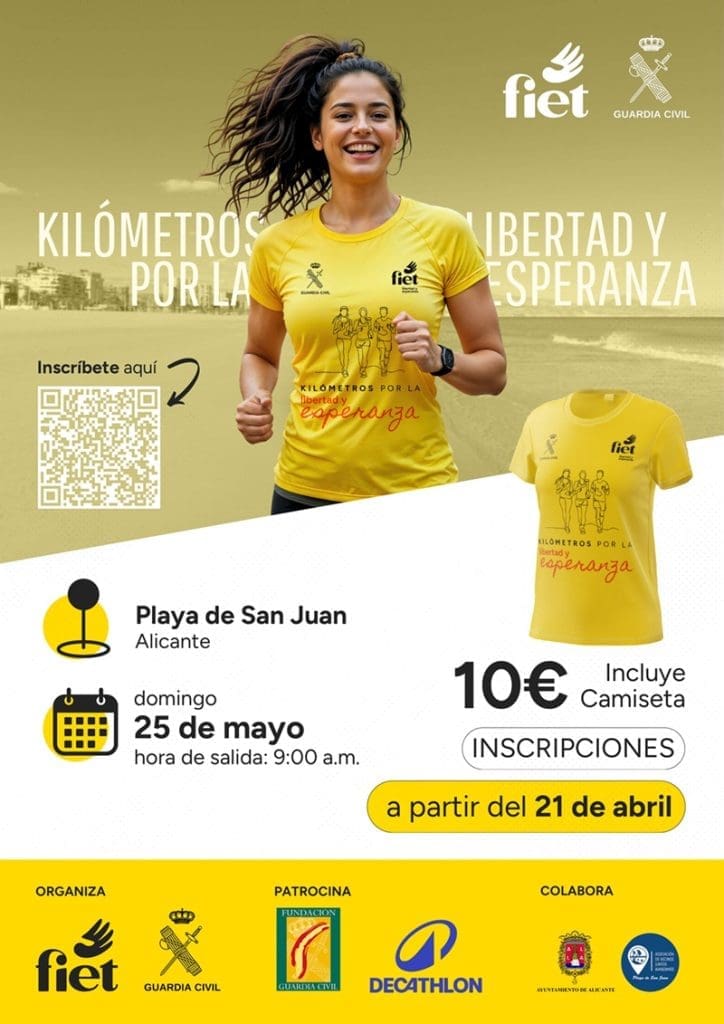 La primera carrera solidaria de España contra la trata de seres humanos tendrá lugar en Alicante. La organizan la Guardia Civil y la ONG Fiet el próximo 25 de mayo en la playa de San Juan, con el objetivo de visibilizar la situación de la trata de seres humanos. Denuncian la situación de personas muy vulnerables que son captadas, a través de falsas promesas, y explotadas. Forzadas a trabajar en condiciones harto precarias o contraer matrimonio u ofrecer servicios sexuales.