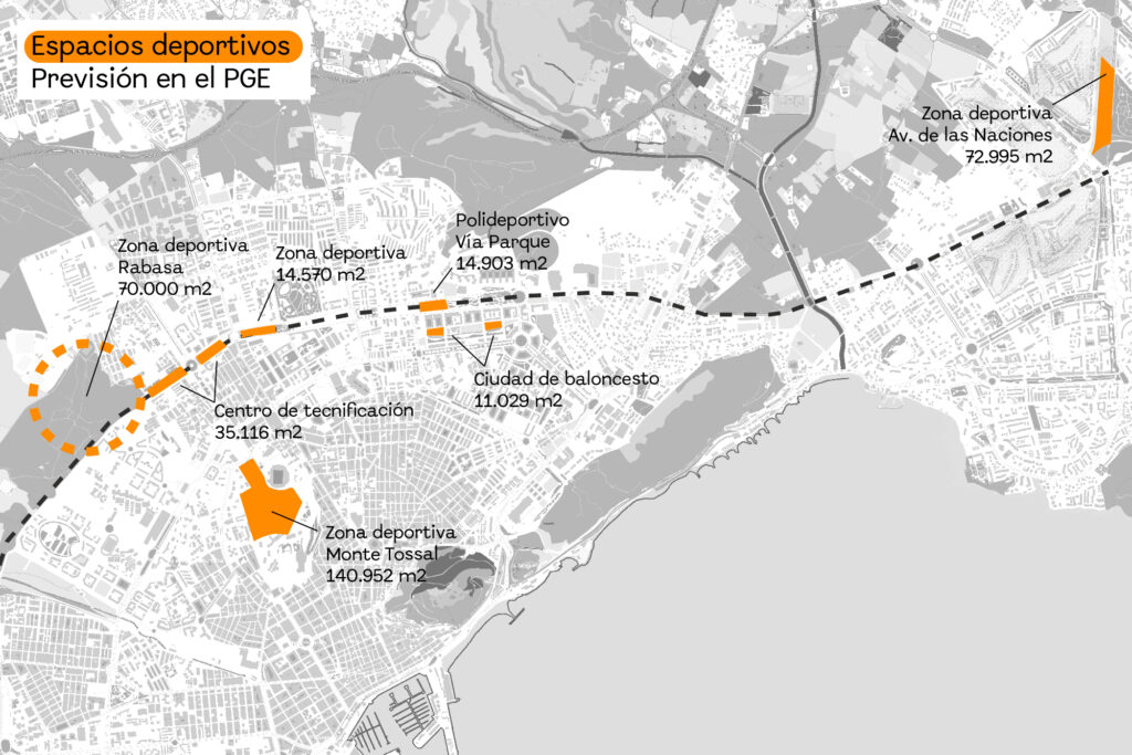 El Plan General prevé también un parque deportivo en Playa de San Juan y la implantación de la Ciudad del Baloncesto y el Centro de Tecnificación en el entorno de la Vía Parque