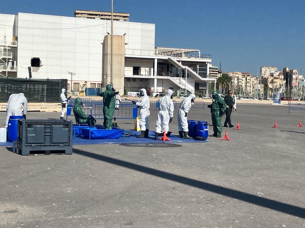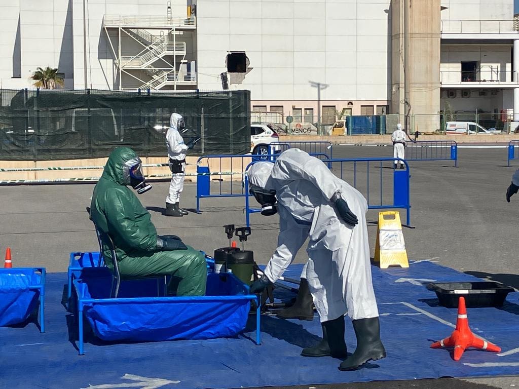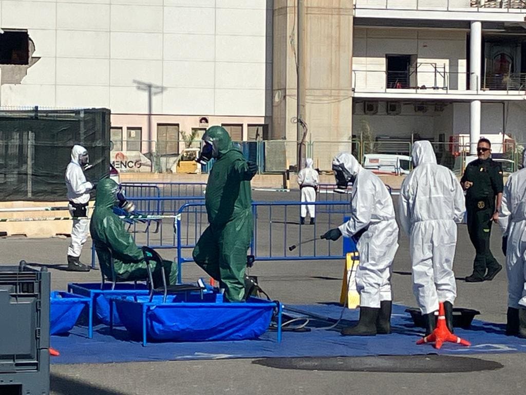 El puerto de Alicante se ha convertido este viernes en escenario de un posible foco de contaminación biológica en el que una treintena de agentes de la Guardia Civil han desplegado un medido operativo. Se ha tratado en esta ocasión de un simulacro que ha jalonado el último día de un curso para formar a agentes de las Comandancias de Alicante, Castellón, Murcia y Albacete en un curso de nivel básico ante amenazas nucleares, radiológicas, biológicas y químicas. En la provincia alicantina son 10 profesionales los que adquieren estas capacidades.