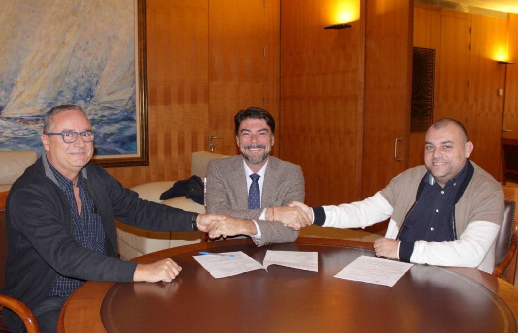 El alcalde de Alicante, Luis Barcala, ha firmado hoy los contratos con Pedro Espadero Colmenar y Sergio Gómez Ferrer, quienes construirán las Hogueras Oficiales 2019 adulta e infantil, respectivamente. El lema de la adulta es «Con otra mirada» y está presupuestada en 98.800 euros, IVA incluido. La infantil tiene como lema «En busca del fuego» y su coste es de 20.800 euros, incluyendo el IVA.