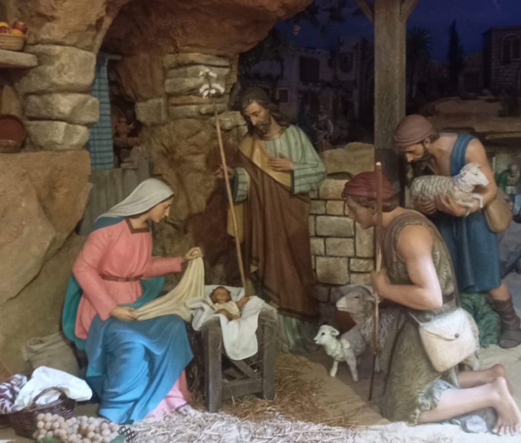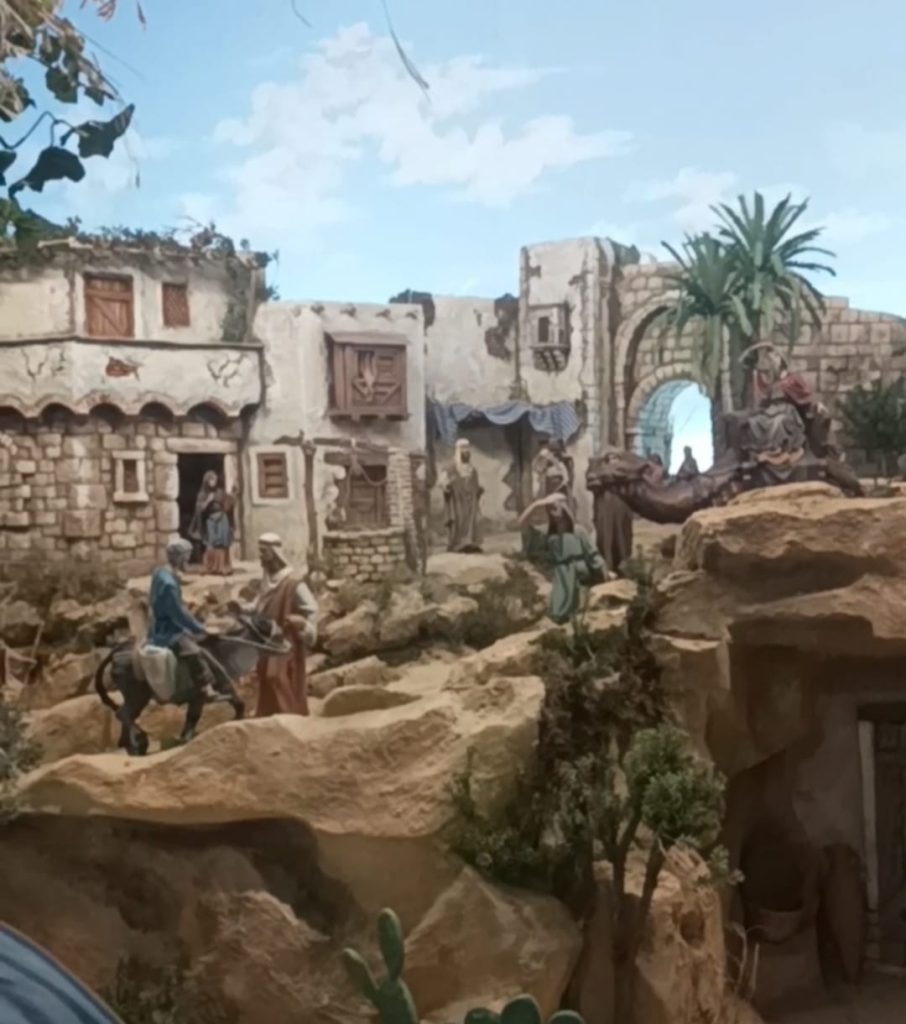 La escena del Nacimiento se aprecia en un primer plano y los belenistas reproducen el palacio del rey Herodes mediante el efecto de una perspectiva