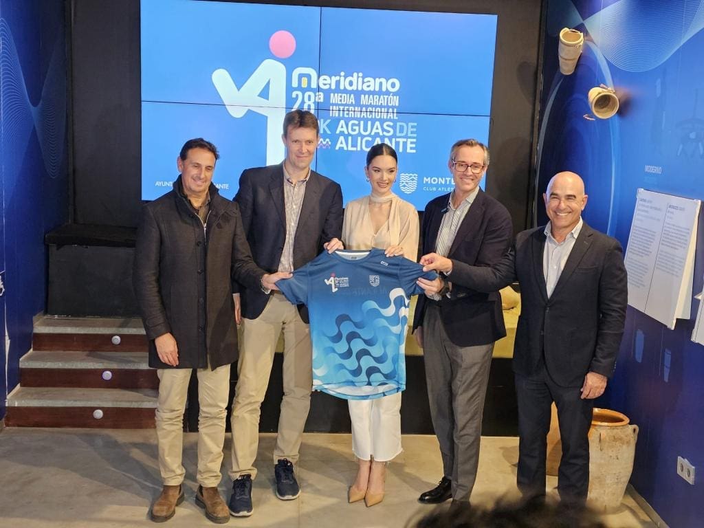 Gallego ha estado acompañado en el Museo de Aguas del Casco Antiguo por Sergio Sánchez, director general de Aguas de Alicante; José Andrés Sánchez, director de Personas y Cultura de Meridiano Seguros, y José Pedro García, presidente del Club Atlético Montemar, coorganizador de la prueba.