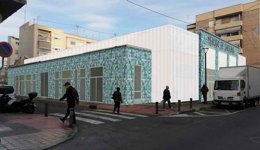 Además se prevé recorfigurar la fachada existentes en la calles Manuel Senante y Doctor Nieto, así como se va a actualizar la imagen del mercado, con la incorporación de nuevos revestimientos de fachada que definan una imagen urbana más contemporánea, con paneles en base de acero galvanizado y prelacado con perforación.
