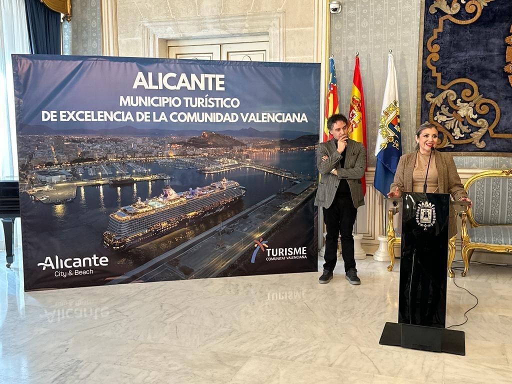 Alicante ha recibido este jueves el reconocimiento oficial como Municipio Turístico de Excelencia, la máxima categoría que contempla la Generalitat dentro de la regulación del estatuto del municipio turístico de la Comunidad Valenciana. La vicealcaldesa y responsable del Patronato Turístico Alicante City&Beach, Mari Carmen Sánchez, ha recogido esta distinción de manos del secretario autonómico de Turisme, Francesc Colomer, en un acto celebrado en el Salón Azul del Ayuntamiento al que han asistido representantes de las asociaciones del sector turístico y miembros de la Junta Rectora del Patronato.
