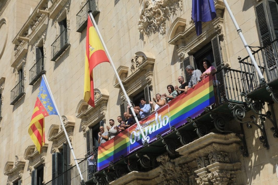 El alcalde, Luis Barcala, la vicealcaldesa y representantes del colectivo han desplegado la pancarta con el lema “Alicante con Orgullo” y los colores del arcoiris que ya luce en el balcón principal del Ayuntamiento.
