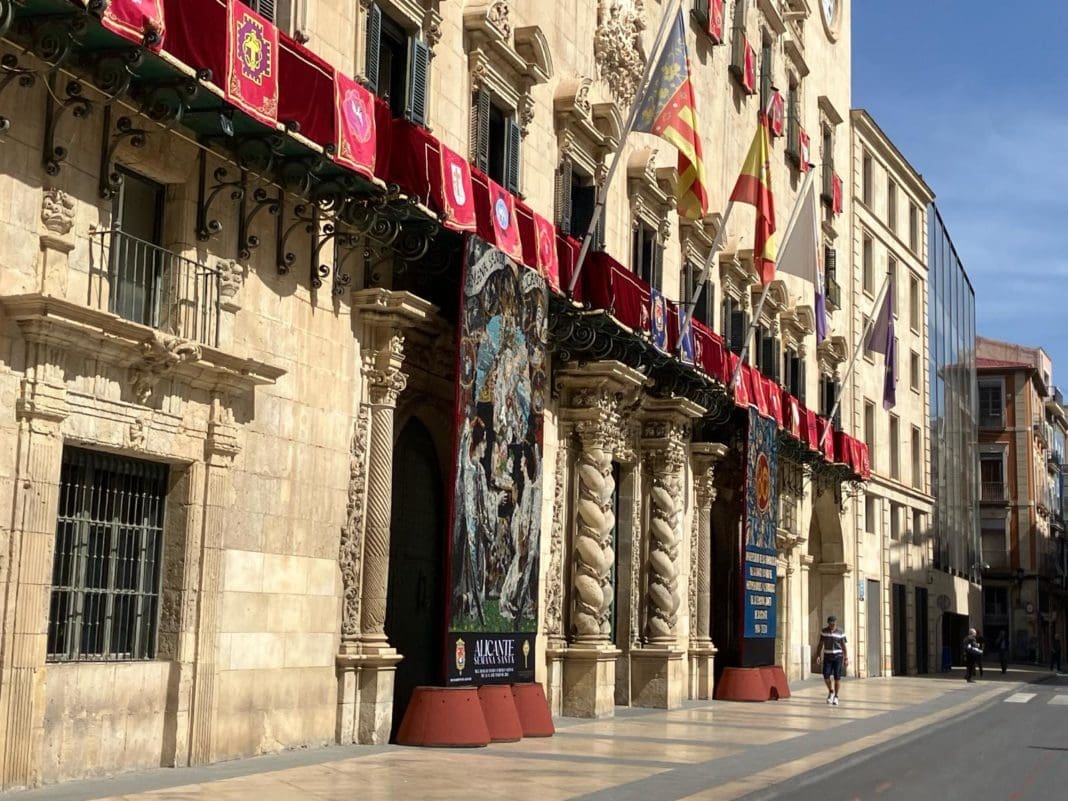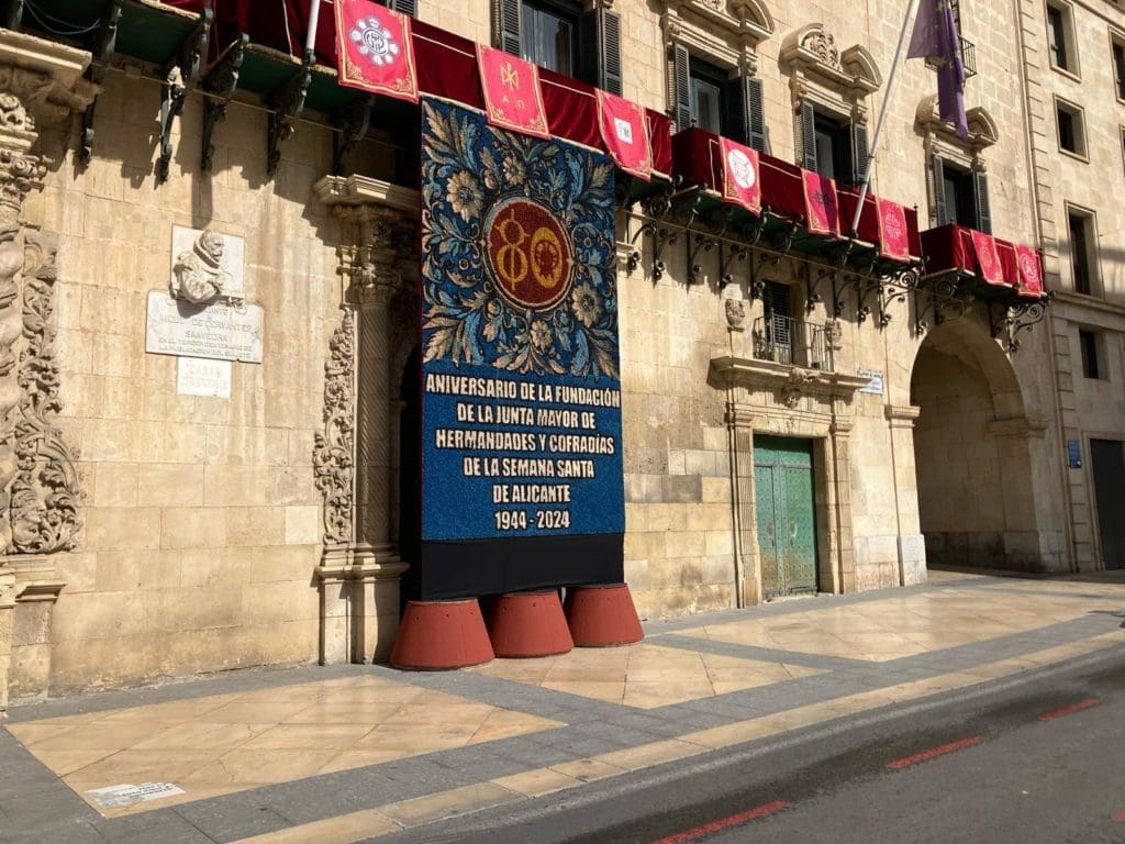 En la capital alicantina «si el tiempo acompaña estará a rebosar de alicantinos, de visitantes y de turistas» indica el primero edil. Así, junto a la organización de los actos litúrgicos y procesiones, están dispuestos todos los dispositivos a nivel de seguridad. También en la Rambla de Méndez Núñez, con gradas ya montadas, se está ultimando detalles de los recorridos oficiales. Este año, además la Casa Consistorial luce una decoración especial con dos tapices florales de grandes dimensiones instalados en los laterales de su fachada principal. Uno alusivo al 80 aniversario de la creación de la Junta Mayor de Hermandades y Cofradías de la ciudad y otro al cartel anunciador de la Semana Santa de 2024, obra del pintor sevillano Pedro Castro. Asimismo, se han situado 27 cobertores en los que figuran los escudos de las cofradías y hermandades, el de la Junta Mayor, y el del Ayuntamiento de Alicante y se dispondrá iluminación especial en la carrera oficial de las procesiones.