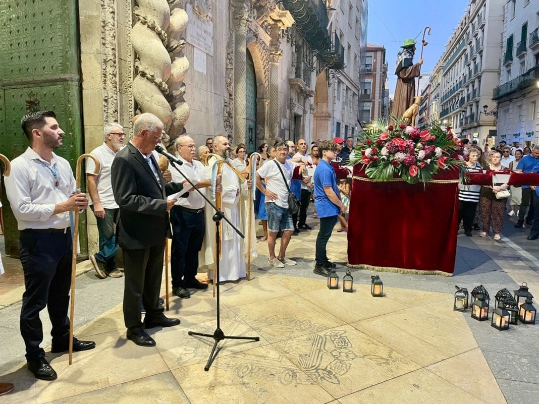 Desde allí ha proseguido la comitiva hasta la plaza del Ayuntamiento. En ese punto, San Roque ha entrado en el zaguán de la Casa Consistorial donde el edil ha pronunciado unas palabras de bienvenida en las que, también, ha incidido en que «San Roque exporta la imagen de Alicante a quienes nos visitan. Permite conocer una parte de nuestras raíces. Invita a participar de nuestras muchas tradiciones. Supone una postal del Alicante de siempre».