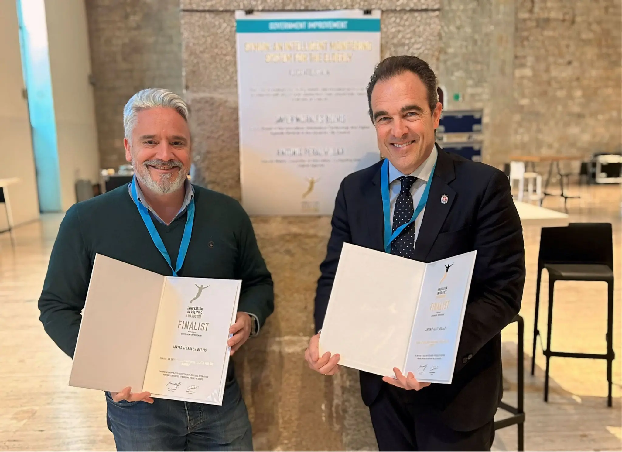 El Ayuntamiento de Alicante ha recibido un reconocimiento internacional como finalista de los Premios Europeos del Instituto de Innovación Política, en la categoría de ‘Buen Gobierno’ de la Unión Europea, por su proyecto Symon impulsado para combatir la lacra de la soledad no deseada de las personas mayores con un sistema de monitoreo inteligente. La gala Innovation in #PoliticsAwards 2024 tuvo lugar el jueves en el Museo Marítimo de Barcelona, y el concejal de de Presidencia, Innovación, y Planes Estratégicos del Ayuntamiento, Antonio Peral, ha recogido el diploma otorgado al Ayuntamiento por una iniciativa que aporta soluciones innovadoras a problemas complejos como es el aislamiento en las personas mayores, y estuvo acompañado de jefe de servicio de Innovación, Javier Morales.