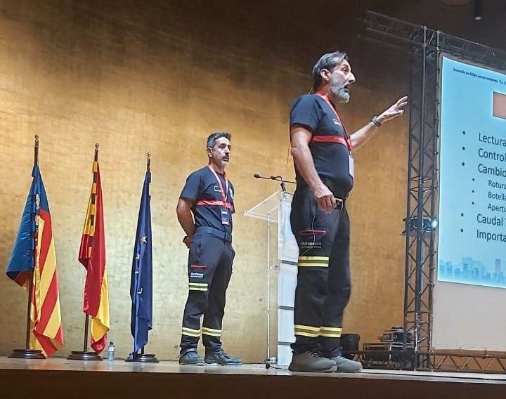 Una de las ponencias que más interés ha suscitado ha sido la exposición desarrollada por Enrique Puig y Francisco García, sargento y cabo del SPEIS, respectivamente, quienes han analizado el incendio ocurrido en la zona de ‘La Chicharra’ -Albufereta- en 2017. Ambos han aportado un buen número de conclusiones sobre la intervención en incendios en zonas costeras con edificaciones de riesgo.