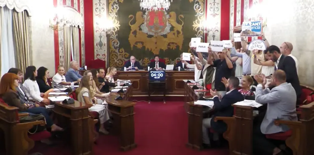 El Ayuntamiento de Alicante instará a Corts Valencianes a excluir a la capital del listado de ciudades de uso predominante valenciano para declarar el predominio del castellano en la Ley 4/1983 de 23 de noviembre de Uso y Enseñanza del Valenciano. Es la quinta vez que el grupo Vox ha presentado esta declaración institucional desde 2020 y hoy ha prosperado con el apoyo del equipo de Gobierno popular.