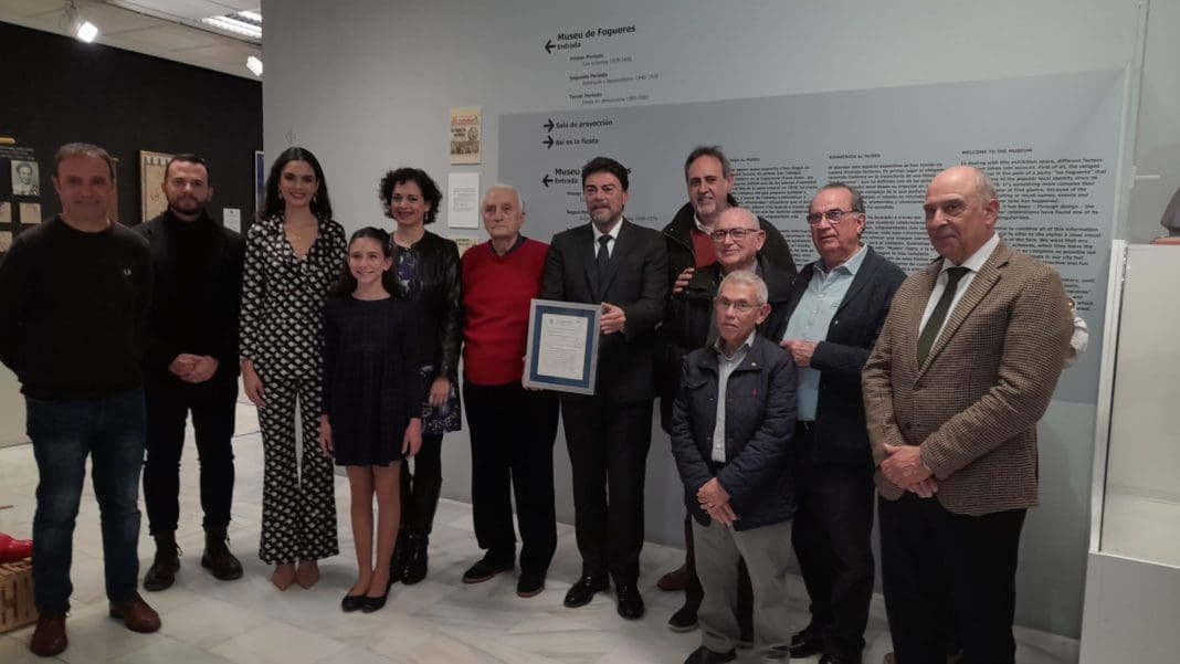 El facsímil enmarcado ha sido colocado hoy en una pared por los miembros de la Comisión Gestora y su presidente entonces, Raúl Baeza, acompañados por el alcalde de la ciudad, Luis Barcala, la actual presidenta de la Federació de les Fogueres de Sant Joan, Toñi Martín-Zarco, y las bellezas infantil Inés Llavador y adulta Belén Mora.