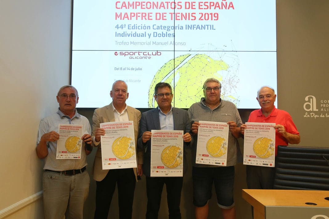 Las futuras estrellas del tenis nacional se darán cita este verano en la ciudad de Alicante para participar en la 44 edición del ‘Campeonato de España Infantil. Trofeo Memorial Manuel Alonso’. El diputado de Deportes, Juanjo Castelló, y el presidente de la FTCV y vicepresidente de la RFET, Antonio Martínez, han presentado esta mañana todos los detalles de este importante evento que se desarrollará del 8 al 14 de julio en las instalaciones del Sportclub.