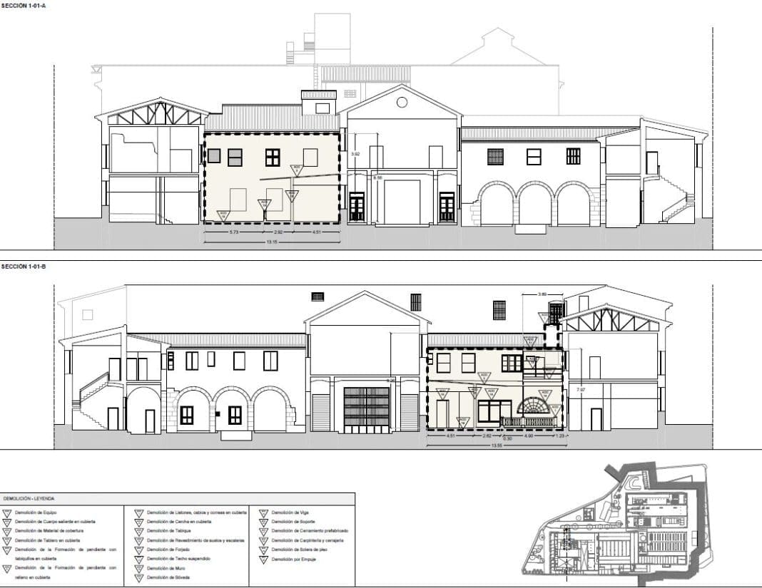 La actuación contempla cuatro fases para recuperar el claustro original, el patio interior, la fachada sur y la nave de cuchillos metálicos del siglo XIX con el derribo de edificaciones adheridas de baja calidad al edificio primitivo.
