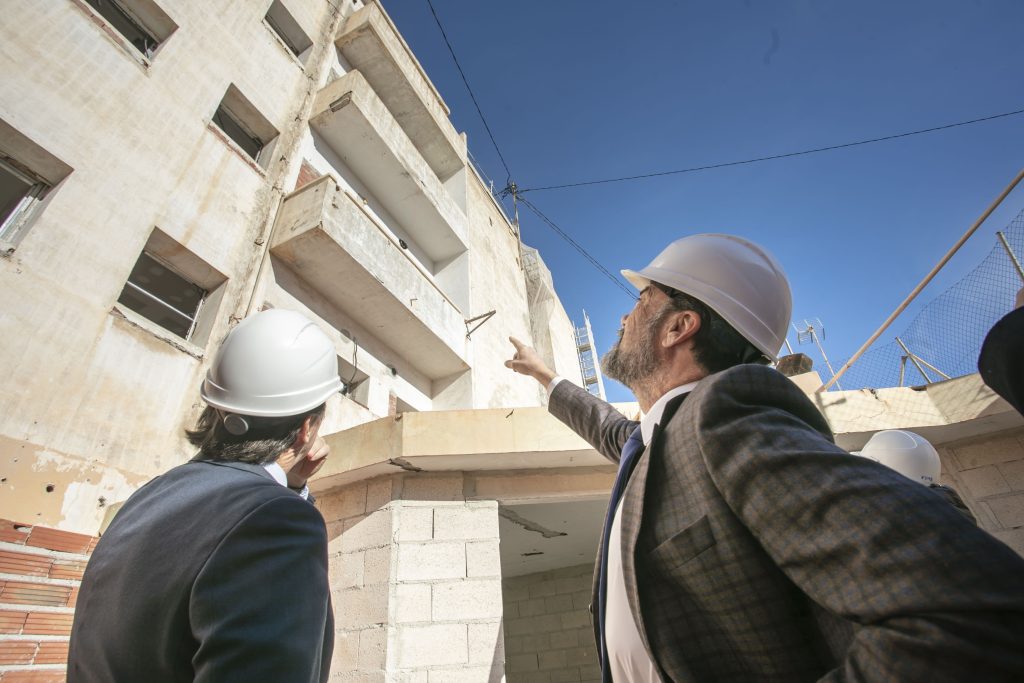Barcala ha recorrido el inmueble acompañado por el concejal de Vivienda, Carlos de Juan. Ha destacado que los trabajos avanzan a buen ritmo con el objetivo de que las viviendas puedan entregarse tras el verano.