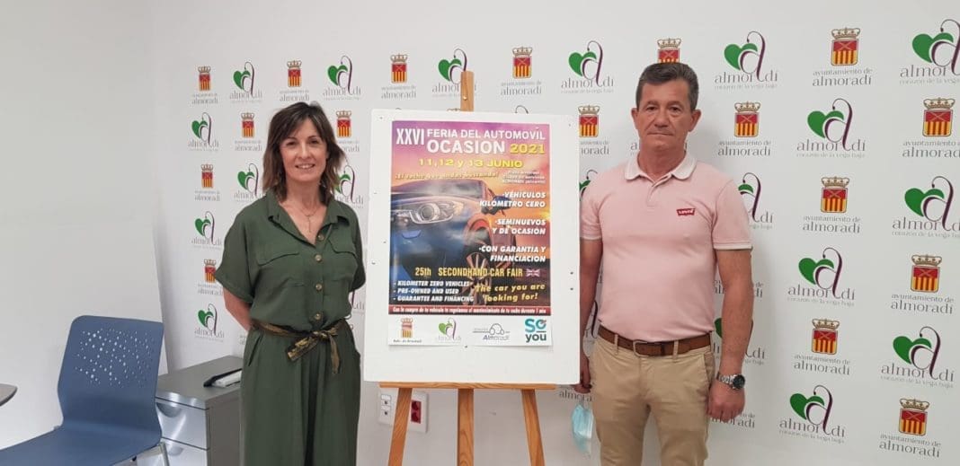 La Concejala de Comercio y Fomento, Carmen Berná, junto a Presidente de la Asociación del Sector del Automóvil de Almoradí, José Mª Espinosa, han presentado ante los medios de comunicación la XXVI Feria del Automóvil de Ocasión, que se celebrará del 11 al 13 de junio en la Plaza Almoradí Ciudad de Servicios. (Junto a Campo de Fútbol)