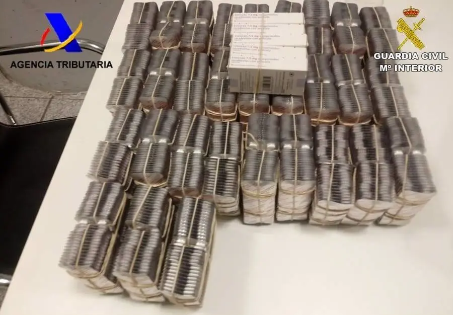 Según ha informado el instituto armado en un comunicado, los agentes detectaron el pasado mes de enero un envío, por vía aérea, de 5.640 pastillas de zoplicona, desde Torrevieja con destino a irlanda. El paquete fue interceptado en el control fiscal, en los almacenes del aeropuerto antes del embarque.