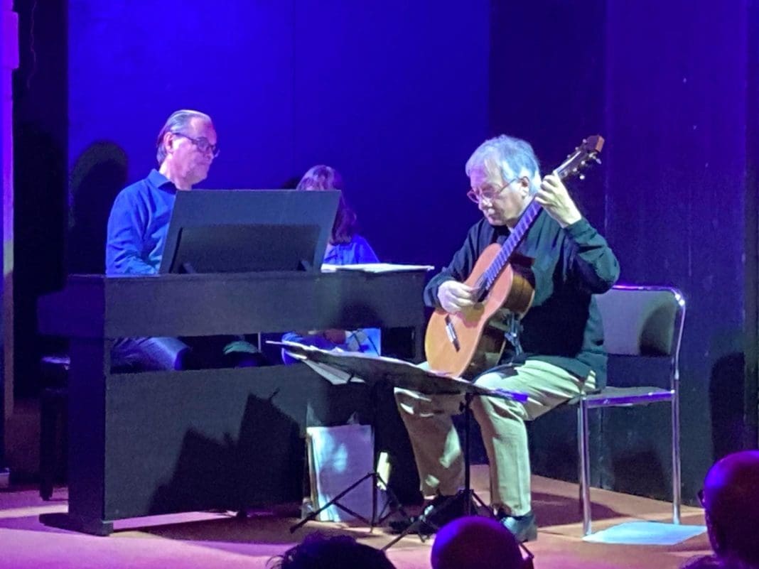 Anoche, el claustro de San José se llenó de magia en la XXVI edición del Festival de Guitarra ‘Ciutat d’Elx’ con una magistral actuación del dúo formado por Álvaro Pierri y el pianista Sergio Posada, dos genios de la música que ofrecieron una magnífica y única actuación. Pierri, asiduo maestro del Festival, se reinventa año tras año convirtiendo en fácil lo difícil con un virtuosismo que roza lo irreal. Y todo ello con un compañero excepcional al piano, con la ardua tarea de traducir una orquesta entera con solo dos manos. Sergio Posada y Álvaro Pierri abordaron un repertorio de extrema dificultad con obras de Bach, Bocherini, Castelnuovo-Tedesco, Villa-Lobos y Brouwer, demostrando así lo grandes maestros que son.