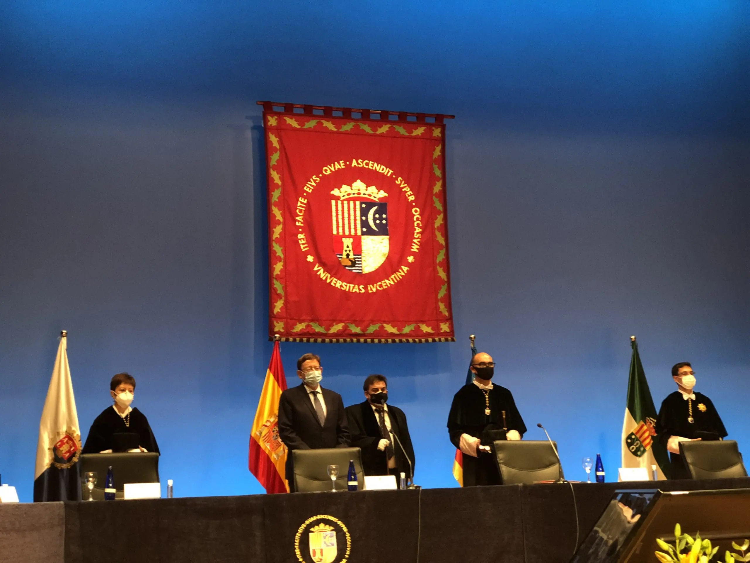 El acto ha sido presidido por el rector de la Universidad de Alicante, Manuel Palomar, el presidente de la Generalitat Valenciana, Ximo Puig, la consellera de Universidades, Carolina Pascual y los rectores de las universidades valencianas.