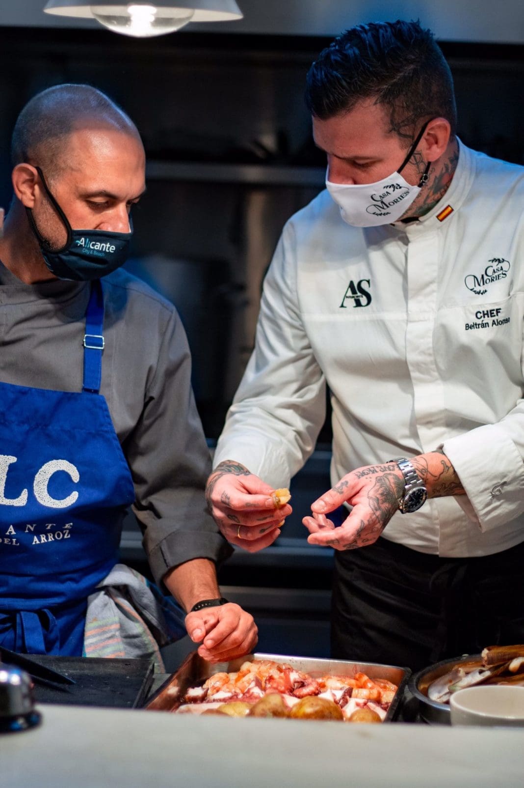 José Francisco García, de Maestral, con su Arroz con salmonete y espinacas en La Ancha junto a Nino Redruello; David Mira de Petímetre cocinó un Arroz cremoso de vegetales al carbón en El Jardín de Alma, que regenta Jesús G. Espartero en Arturo Soria; José Gómez y José Guillén, de Racó del Pla, hicieron su Arroz de pata en Treze, de Saúl Sanz; Tierno Mbaye y Geni Perramón, de la Taberna del Gourmet, conquistaron con un Arroz a banda meloso a la clientela de Alabaster, con Antonio Hernando; Oscar Cerdá, del Restaurante Jorge, hizo doblete y preparó su Arroz con chipirones y ajetes en el Candeli, capitaneado por los hermanos Rivera y en el Casa Mories su Arroz con pulpo y gamba roja dentro del menú degustación del chef Beltrán Alonso; por último, Rubén Rodríguez, Cristina de Juan y Manuel del Amo, al frente de Dársena, hicieron un exclusivo pase en A’Barra donde deleitaron con su Arroz con gambeta y calamar.