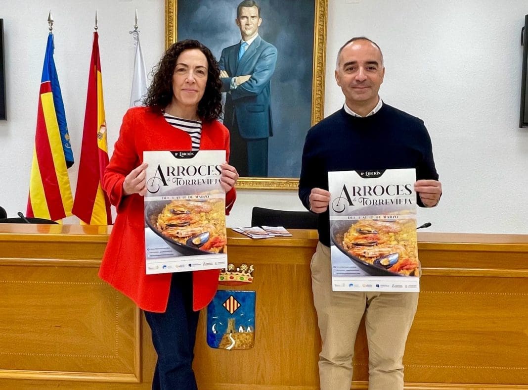 La concejal de Hostelería y Turismo del Ayuntamiento de Torrevieja, Rosario Martínez, y el presidente de la Asociación de Empresas de Hostelería de Torrevieja y Comarca, José Ignacio Pastor, han anunciado la celebración de la 11ª Edición de «Arroces de Torrevieja».