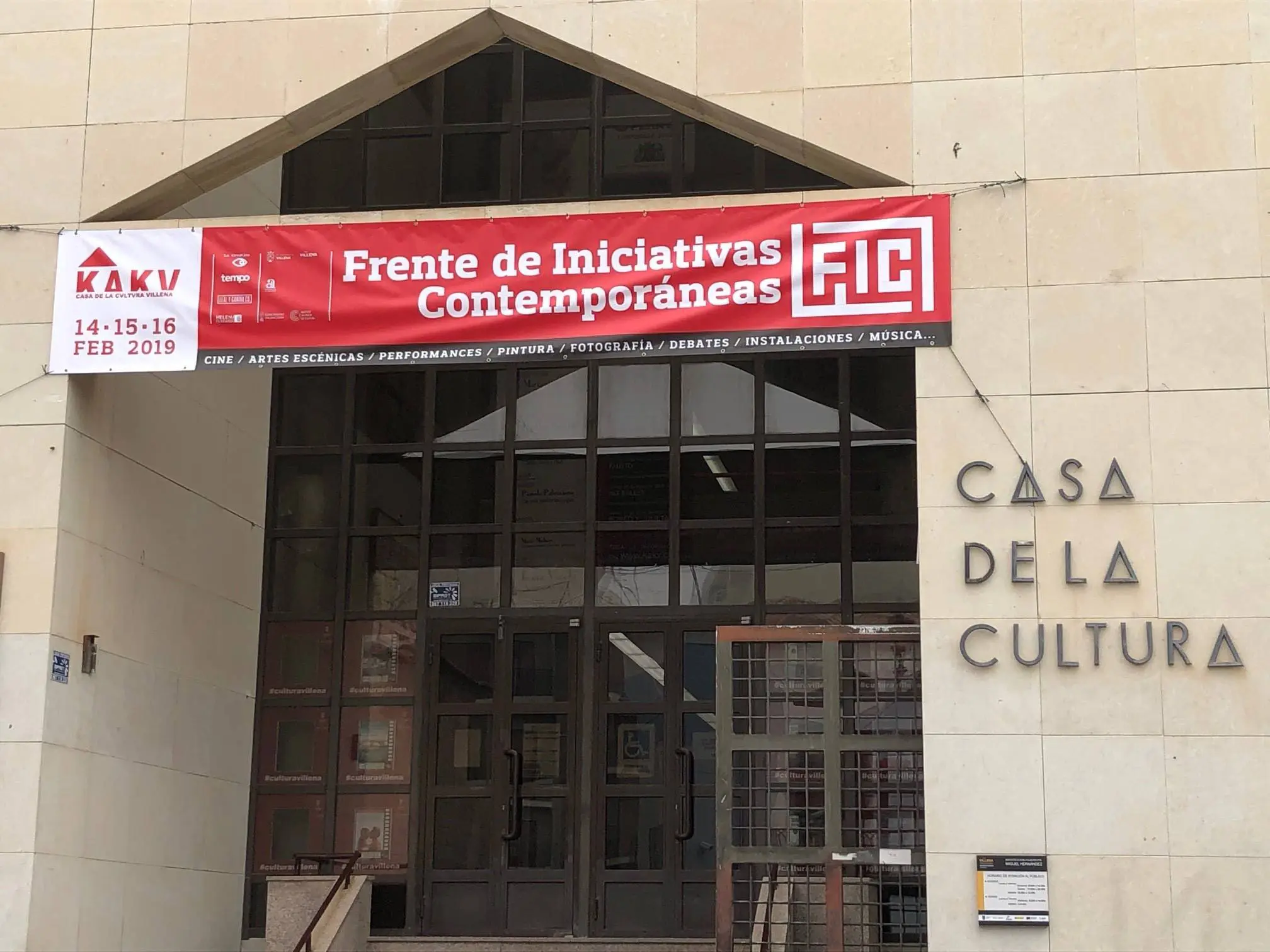 El Frente de iniciativas contemporáneas es un proyecto de soporte y promoción de iniciativas artísticas y nuevos lenguajes presentados y desarrollados en Villena.