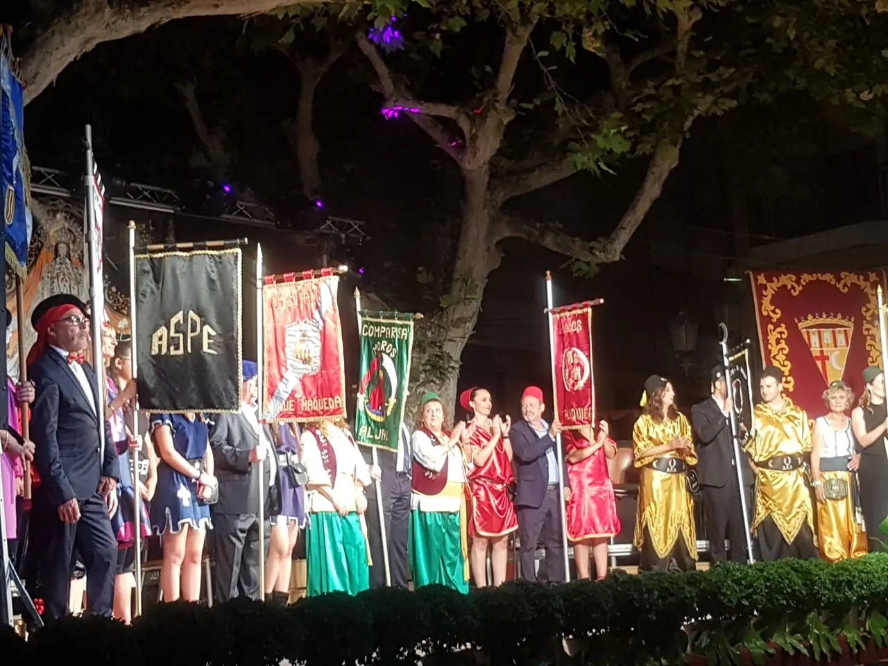 Precisamente, el alcalde de Aspe, Antonio Puerto, hizo una mención especial a esa gran comunión entre «abuelo y nieta» para ensalzar la fantástica hermandad y unión que hay en los Moros y Cristianos de Aspe, una fiesta que la calificó de «grande».