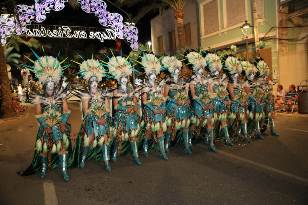 La Unión de Moros y Cristianos Virgen de las Nieves de Aspe la forman ocho comparsas. En el bando Cristiano están Cristianos Duque de Maqueda, Cristianos Estudiantes, Lanceros de Uchel y Cristianos Contrabandistas de la Sierra Negra; mientras que en el bando Moro se encuentran Moros Aljau, Moros Fauquíes, Moros Alcaná y Moros Sulaymán.