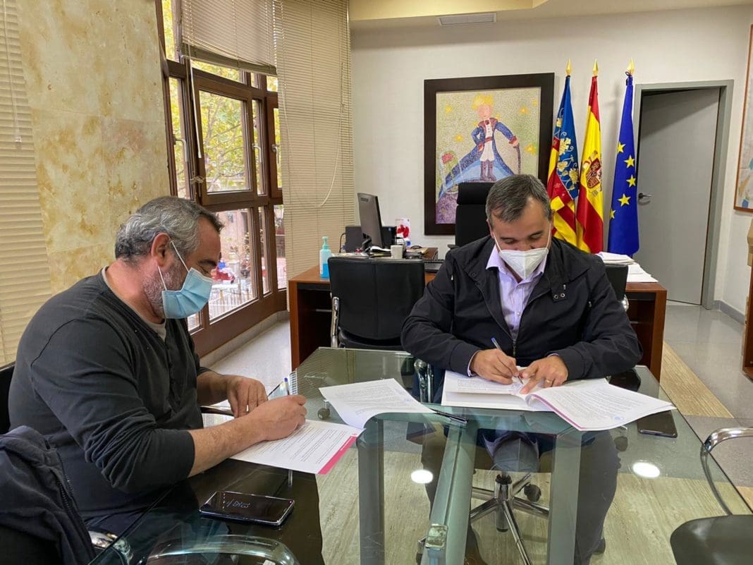 El alcalde de Aspe, Antonio Puerto, y el presidente del centro especial de empleo Tomás López han firmado un convenio el pasado 20 de noviembre de 2020 con una colaboración por importe de 15.300 euros.