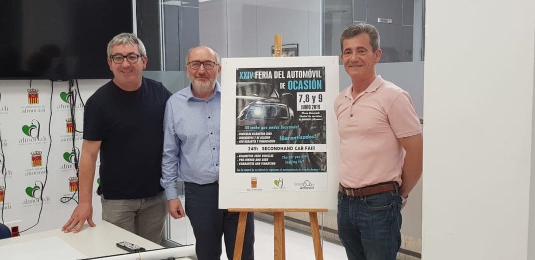 El Concejal de Comercio y Fomento, José Antonio Latorre, junto a los miembros de la directiva de la Asociación del Sector del Automóvil de Almoradí, José Mª Espinosa y Vicente Zaragoza, han presentado ante los medios de comunicación la XXIV Feria del Automóvil de Ocasión, que se celebrará del 7 al 9 de junio en la Plaza Almoradí Ciudad de Servicios.