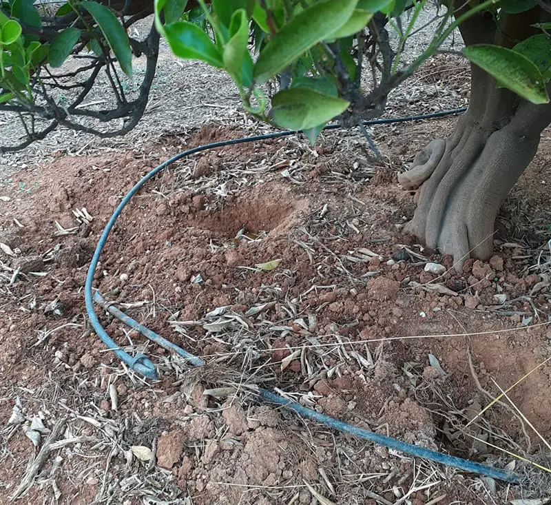 En busca de los bulbos del ‘agret’ o la ‘cresolera’, la fauna salvaje hace agujeros que provocan accidentes, rompe gomas de goteo, seca raíces y tumba plantones jóvenes