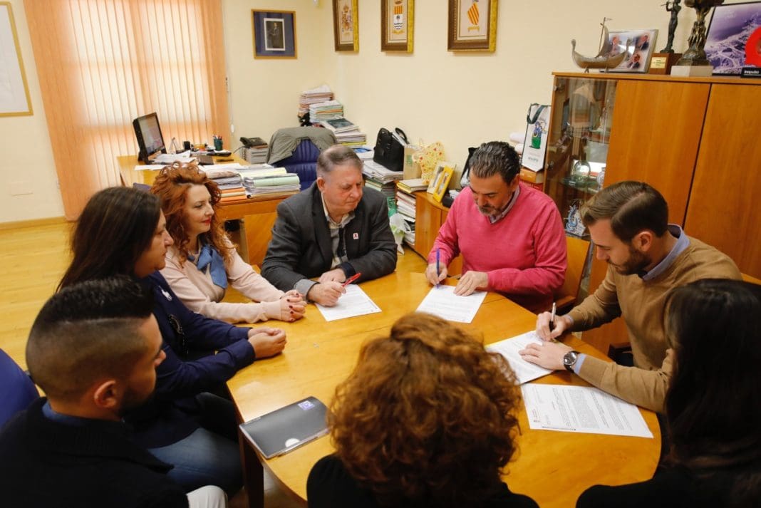 El alcalde de l’Alfàs del Pi, Vicente Arques, y el presidente de la Asociación de Agencias de Viaje de Benidorm (AVIBE), Juan José Pérez Parker, han firmado un convenio de colaboración destinado al fomento del turismo y a la creación de nuevas oportunidades de negocio para las empresas turísticas del municipio. Al acto han asistido las ediles de Comercio, Dolores Albero, y de Presidencia, Rocío Guijarro, junto a varios miembros de la directiva de AVIBE.