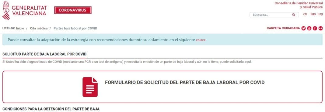 La Conselleria de Sanitat ya ha activado el enlace para solicitar las bajas laborales de los pacientes con covid.